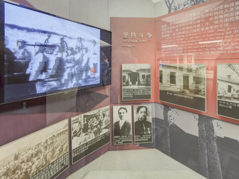 李大钊纪念馆第三展厅共有“献身人民解放事业”“李大钊精神永存”两个专题。这两个专题主要讲述了为追求的民族独立和人民解放事业,李大钊同志不畏生死来捍卫真理,他开创的伟大事业和留下的思想遗产永远不可磨灭,精神长存。