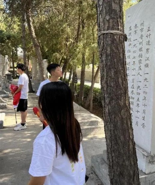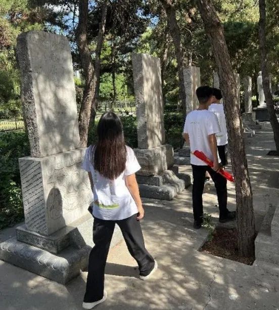随后在指导老师蒙翠平和王峥的带领下,我们走进了陵园的深处,一块块的石碑是对先烈事迹的歌颂,是对先烈的无比怀念,一块块的石碑使我们忍不住驻足在此,想要去了解它的前世今生。我国现代著名诗人藏克家曾这样写道:“有的人活着,他却死了;有的人死了,他却活着”。这两句诗用在解释 “人民英雄,虽死犹生”的碑文,贴切自然。这也是革命烈士 “为人民利益而死”的绝妙注脚。