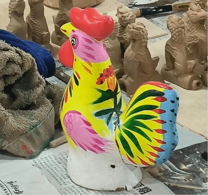 来到泥人王工作室,首先看到的就是正在工作的老师们,屋子四周摆放的都是他们绘制出来的一个个泥塑,色彩鲜艳,吸引了我们的目光,大家都忍不住称赞其神态。工作人员杨老师向研学的一行人讲解了泥塑的来源与特点,杨老师说:“泥塑表现出来的造型比较夸张,线条自然简拙,色彩生动,栩栩如生,其中,当属“大公鸡”最为著名。”随后,杨老师介绍了泥塑的历史故事并分别对其他动物以及戏曲人物进行详细介绍,她说道:每个动物的图案都有不同的寓意,并且随着时代的发展,努力向其中融入现代元素。体验制作泥塑的同学也分享了自己的感悟,她认为泥塑很有趣,是一件很考验耐心的事。对于为什么能在泥塑制作这门手艺上坚持这么久,杨老师等工作人员表示,是因为自己对其深深的喜爱。同时,他们经常组织公司的孩子们体验泥塑的制作,让孩子们感受到其中的乐趣与意义;参与各种演出与展览,让更多人认识泥塑,希望这门手艺能够保存并传承下去,得到更多的创新。