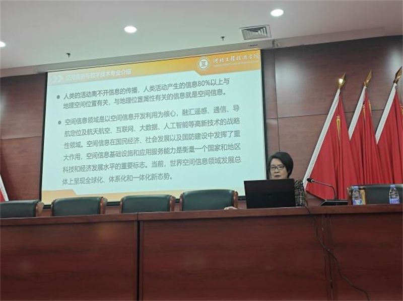 讲座伊始,张冬雯教授对空间信息与数字技术专业进行了系统阐述。张教授指出空间信息与数字技术专业是融合地理信息科学、遥感技术、卫星导航、计算机科学及大数据分析等多学科的交叉前沿领域,核心在于对空间数据的采集、处理、分析、可视化与应用,是推动数字城市、智慧交通、环境监测、资源管理等关键技术支撑。
