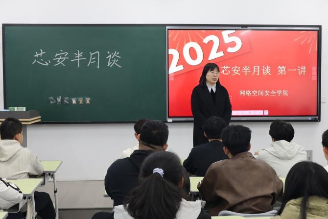 公司党总支书记、副经理樊风彩向与会师生介绍了开展“芯安半月谈”系列主题活动的初衷与开展形式,强调此活动将围绕习近平新时代中国特色社会主义思想,着力突出网络空间安全主题,同时关注新时代下思想聚焦、时政热点、现代化进程、改革进行时及员工发展需求等话题,为师生逐梦新征程凝勤学之心、聚信仰之力。