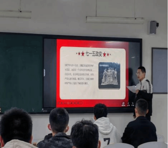 2022级软件工程1班张柯威同学重点讲述了南昌起义的三点启示。一是坚定不移的革命信念,不管遇到什么艰难险阻,甚至生死考验,都矢志不改;二是敢于斗争的英雄气概,在白色恐怖面前不畏强暴,奋起反抗;三是百折不挠的坚强意志,在困难和失败面前坚韧不拔,越挫越奋。这些在困难的时候、危险的时候、失败的时候,在历史的重大关头,所表现出来的精神,是最为宝贵,最需要学习和发扬的。中国革命之所以能够成功,就在于有这样一批拥有这种精神和品格的共产党人为之不懈奋斗、流血牺牲,就在于我们党的事业一直有这么一股劲、这么一股革命热情、这么一种拼命精神来支撑和激励。中国革命的胜利,就是中国共产党人革命精神的胜利。