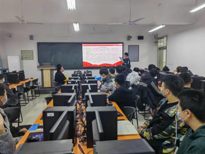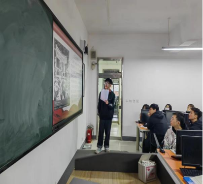 电商1班、电商2班同学对上述进行补充并展开介绍了从开始到1952年10月三反五反运动结束的过程以及各项条例。同学们认真听讲,发表自己的见解,对三反五反运动的认识进一步了解,深刻理解了三反五反运动的重大历史价值。以下是同学们认真听讲的图片: