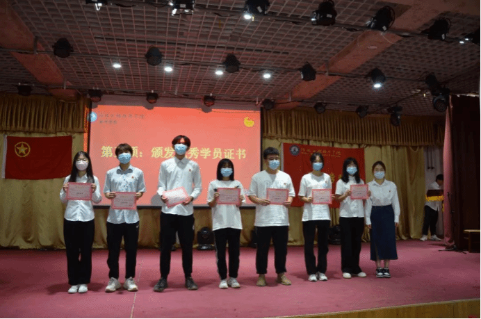 首先二十八名优秀学员依次上台领取优秀学员奖项,其次各个部门结业学员依次上台领取结业证书。