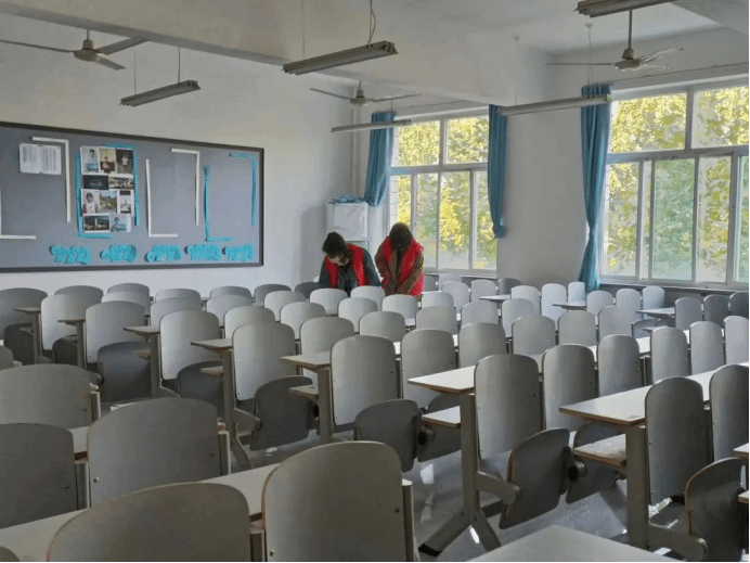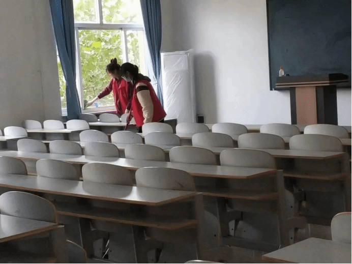 活动期间负责人对参与人员进行指导,确保卫生清洁无死角。打扫完毕后,他们分别对每间教室进行了仔细检查,确保无误后拍照上传。最后,集合进行总结,本次活动圆满成功。