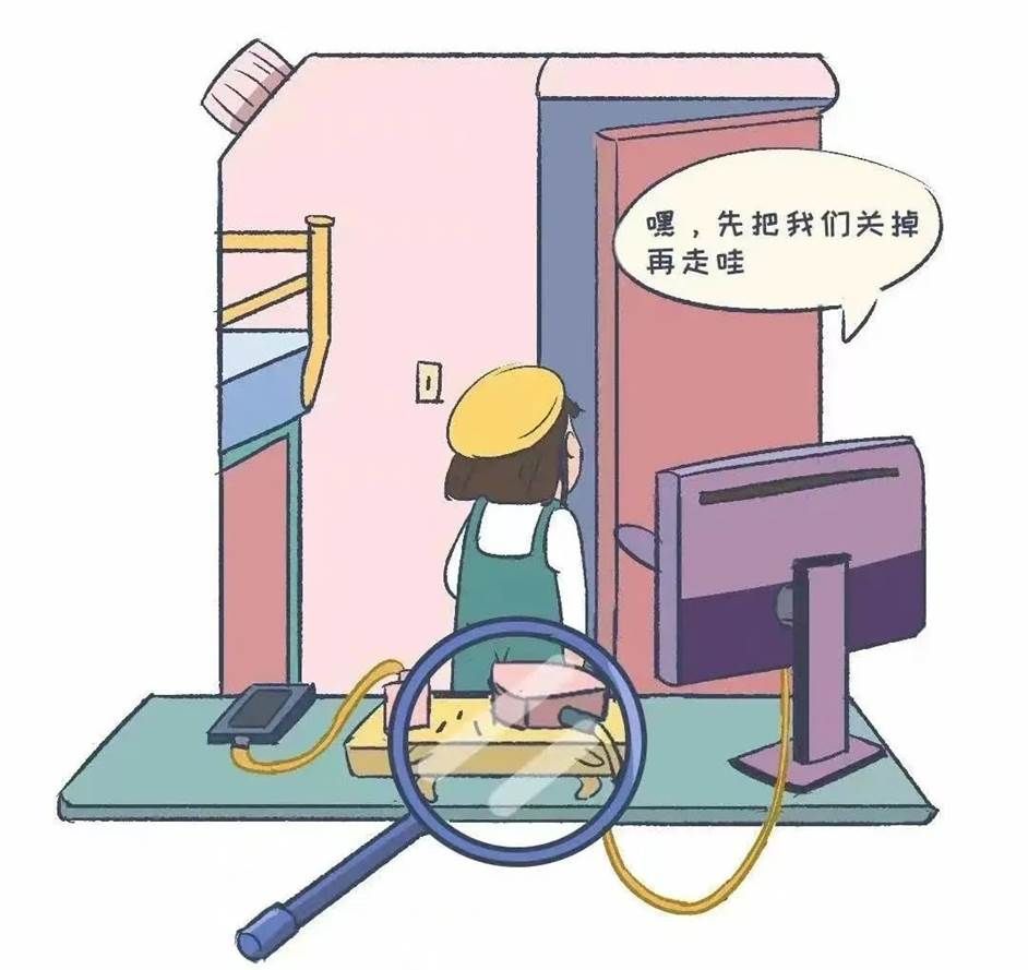 3、离开宿舍时要切断所有电源,包括充电器、电脑等;