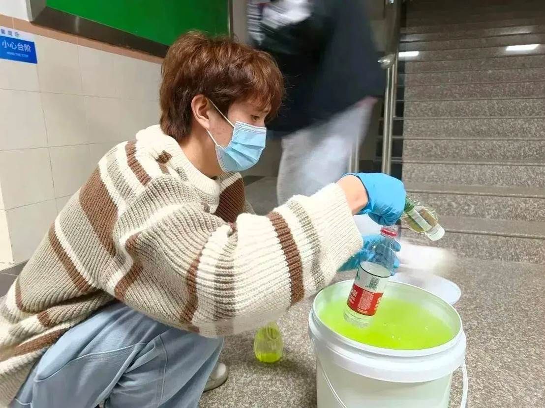 消杀进行中,老师和志愿者们严格按照卫生消毒管理标准规范操作,科学配比消毒液,戴口罩,手拿喷雾器穿梭在公司的各个角落。对教室、楼梯走廊、卫生间等区域进行了全方面细致的消杀,不遗漏每一个角落,确保万无一失,他们用实际行动坚决筑牢疫情防控的第一道防线。