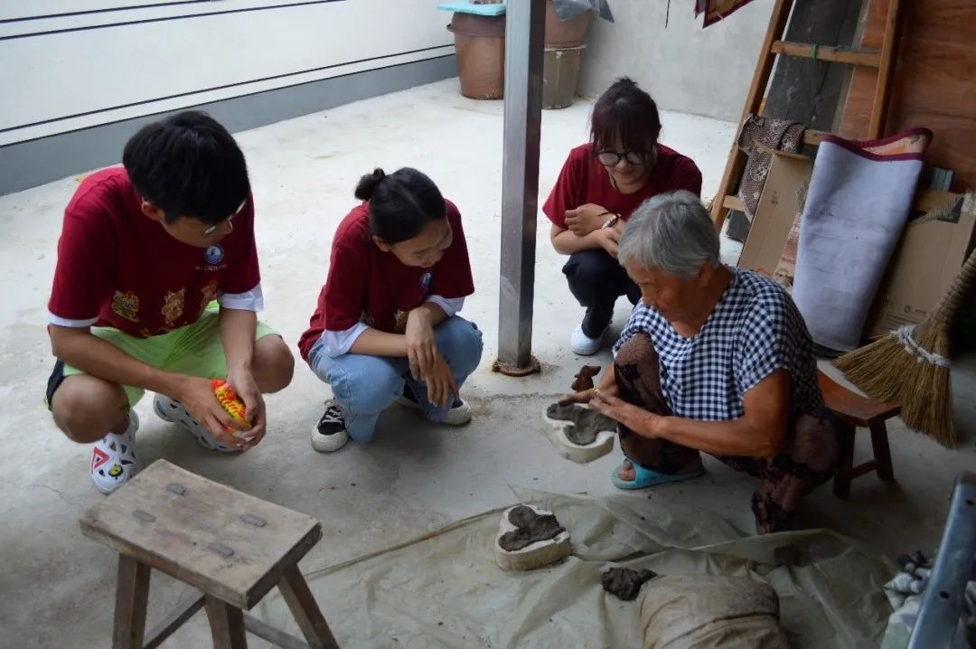 此次我们拜访了非遗工匠杨桂亭奶奶。杨奶奶虽已过古稀之年,但一直坚持制作泥人,家中有进百个泥塑模具和典型的泥塑作品,我们也向杨奶奶学习了如何用模具制作泥塑。杨奶奶告诉我们,虽然知道泥塑的人很少,但还是有人愿意学习并传承泥塑的制作,也曾由公司邀请她去给员工讲课。
