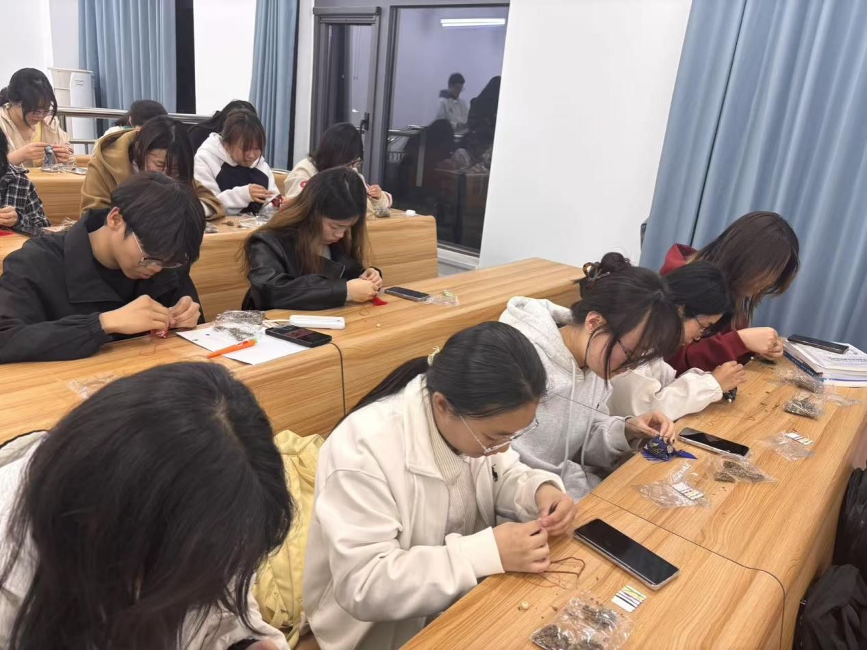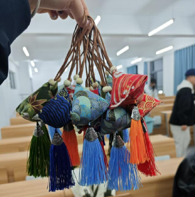 制作环节,社团工作人员将材料分发给员工们。第一项是进行布料的裁剪,他们小心翼翼地按照模板剪出形状,设计香囊的外形。填充香料也是重要一步,大家仔细地将各种香料混合,感受着春天的气息。在缝合过程中也遇到了不少困难,但在同学的帮助下,他们逐渐掌握了技巧。系上精美的丝线,一个个色彩斑斓、造型各异的香囊便呈现在眼前。