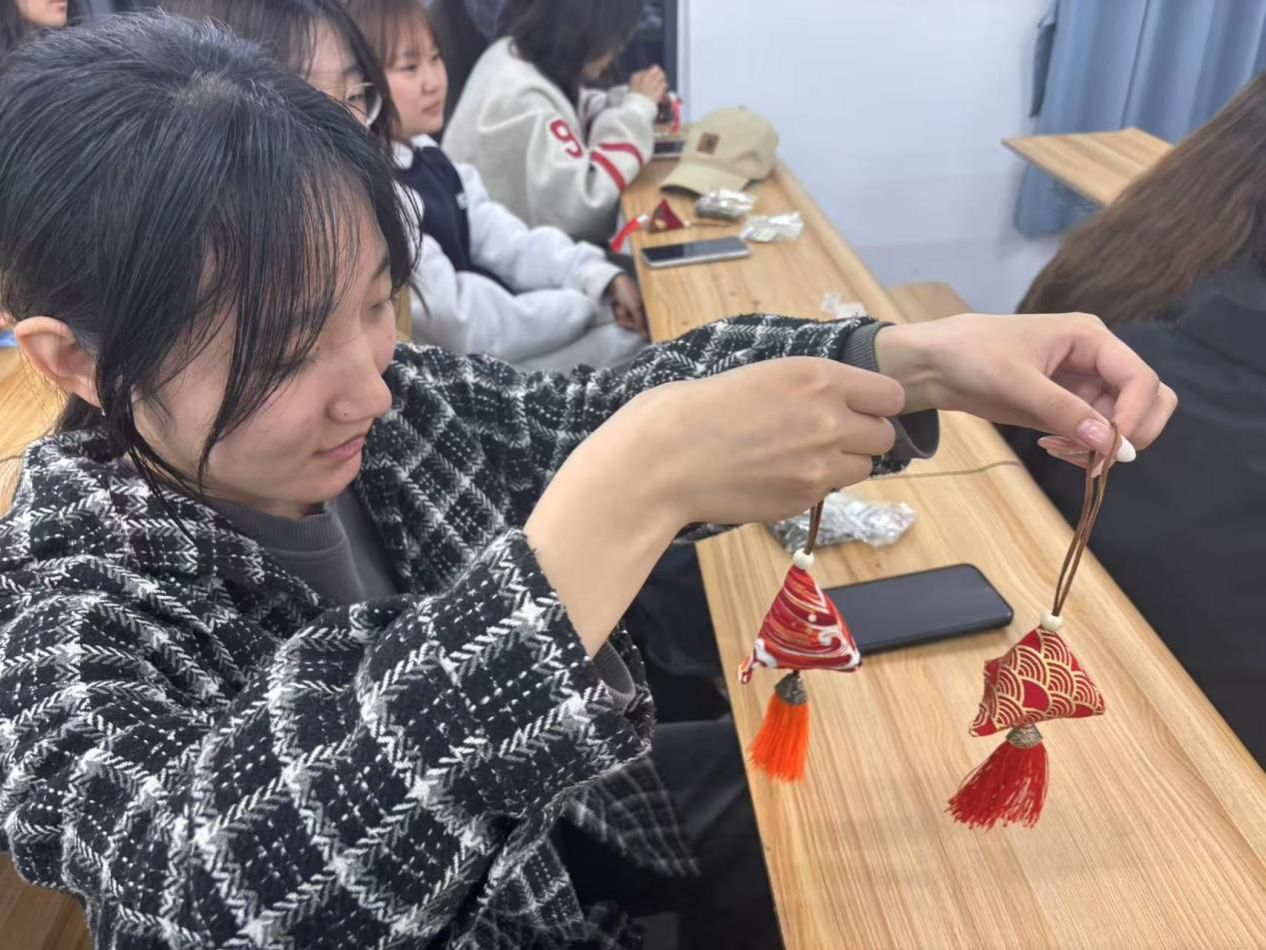 在自己动手制作后,同学们纷纷展示自己的作品。有的员工在香囊上绣上了自己的名字或喜欢的图案,有的则添加了小铃铛、珠子等装饰,让香囊更加美观。一位同学制作的以京剧脸谱为元素的香囊格外引人注目,脸谱的色彩和图案栩栩如生,展现了传统文化与现代创意的巧妙结合。大家相互欣赏、交流,现场充满了欢声笑语。