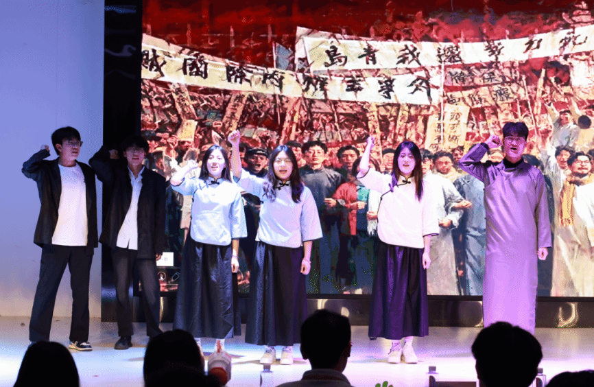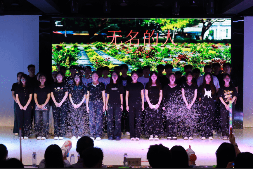 舞台上,以情景再现激活历史记忆:2024级网络空间安全4班团支部以幕剧形式复刻“五四”街头,激昂音效中,演员们振臂高呼“外争主权,内除国贼”,逼真还原百年前青年的家国呐喊;2024级软件工程2班团支部聚焦校园现实,通过情景剧《破茧向阳》揭露霸凌困境,光影流转间,演员从蜷缩颤抖到携手前行的转变,细腻传递出“向光而生”的治愈力量,引发观众强烈共情;2024级网络空间安全5班团支部以五四精神为引,通过舞台剧回溯往昔峥嵘,搭配朗诵激昂诉说,融合舞蹈与音乐《错位时空》,串联古今,展现团支部别样风采。