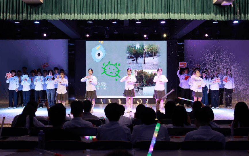 歌舞类节目以蓬勃朝气点燃现场:2024级软件工程1班团支部用情景剧致敬五四,用诗朗诵传承先辈之志,用歌曲《有我》致敬中国共产主义青年团,展现当代青年的蓬勃力量;2024级网络空间安全6班团支部《我和我的祖国》合唱堪称视觉盛宴—背景大屏的蓝天白云下,五星红旗挥舞飘扬,同学们手中星星灯随旋律汇成“星河”,前排手语表演者以指尖“书写”对祖国的深情,庄严与温暖在舞台上层层晕染;2024级软件工程3班全体员工共同出演,以班级生活写照与荣誉获得为背景,搭配《像你这样的朋友》音乐,博采众长,真切的让大家感受到这是一个朝气蓬勃,团结一致的集体!