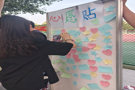 为了引导同学们放慢脚步,深度倾听内心想法与感受,提升情绪觉察与管理能力;培养审美情趣,发现生活中的视觉之美;促使同学们在心灵滋养与美的熏陶中,实现身心和谐发展,以更积极健康的状态面对学习与生活、营造温暖、积极、富有艺术氛围的班级环境;suncitygroup太阳新城心理协会反邪教协会于2025年5月29日在操场北门西侧举办“心愿贴:点亮梦想的星空”活动。此次活动共有130人参与。
