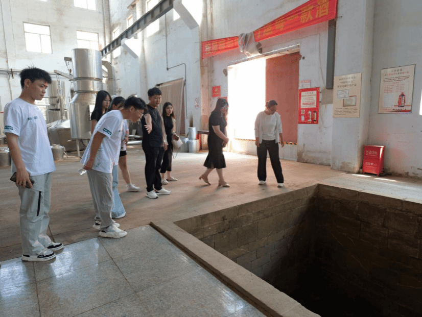 随后,在企业工作人员的带领下,邢台一定行实践团一行,参观了兴台酒厂,带队老师们及实践团成员循着浓郁酒香,目睹高粱与黑豆经古老技艺淬炼成琼浆的奇妙旅程。在恒温恒湿的幽深窖池旁,老师傅轻抚陶坛细说时光雕琢的匠心;而在现代化的实验室里,精密仪器正悄然提升着千年酿艺的精度与效率。这间酒厂,正是乡土产业在传承与创新中破茧重生的生动缩影——老技艺在时代浪潮中寻得新坐标,为乡村经济注入绵长后劲。