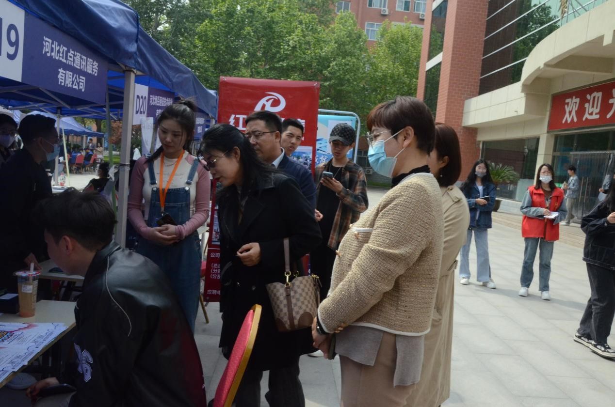 4月27日上午,软件公司协助市人社局、市教育局联合举办了“就业在‘冀’·职引未来”2023年石家庄市公共就业服务进校园软件和信息技术服务行业招聘会。在招聘会现场,软件公司赵冬梅经理、党总支书记王亚杰、教学副经理张波,特意与河北特乐信息科技有限公司、河北乐坤信息技术有限公司、河北博岳通信技术股份有限公司、河北红点通讯服务有限公司、平安普惠信息服务有限公司石家庄第一分公司、石家庄文腾商贸有限公司、石家庄朗宁体育用品科技有限公司等7家企业进行现场岗位对接交流。