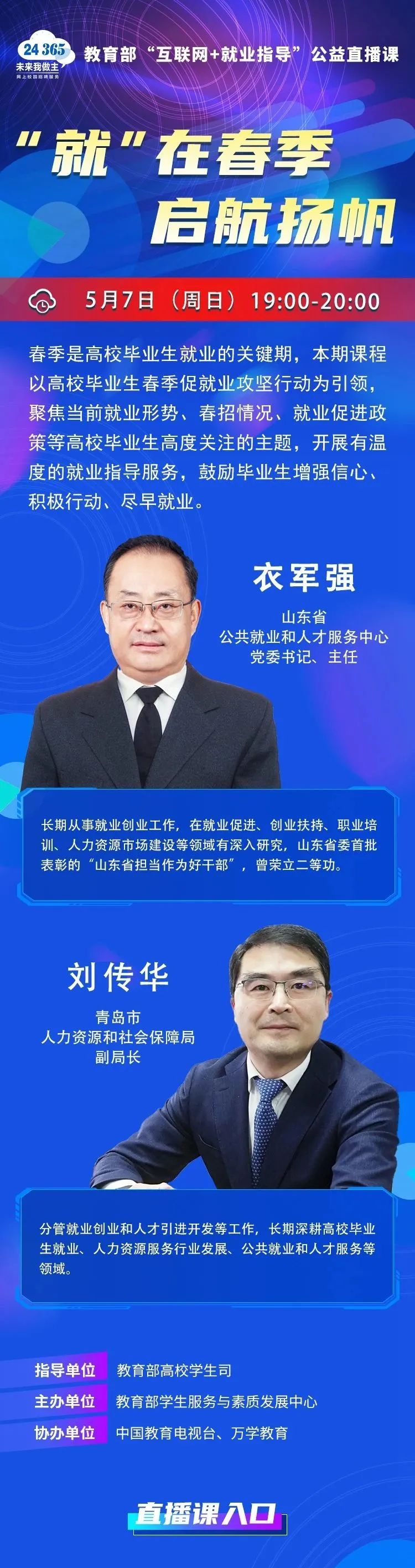 教育部“互联网+就业指导”公益直播课:“就”在春季,启航扬帆