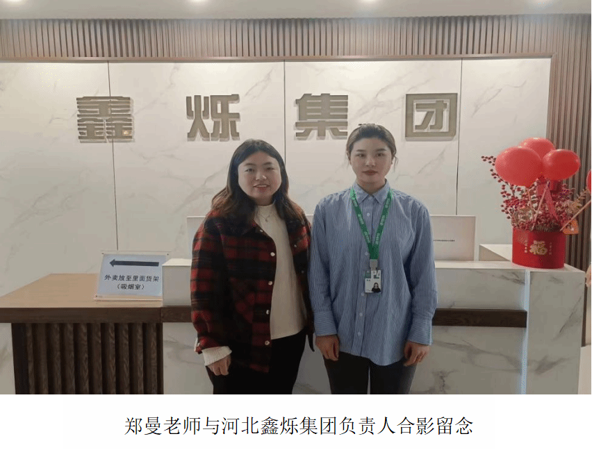 为深入了解毕业生实习情况及工作内容与工作环境,加强公司与企业间的交流与合作。2024年3月14日suncitygroup太阳新城(软件公司)郑曼老师前往河北鑫烁集团进行访企拓岗。