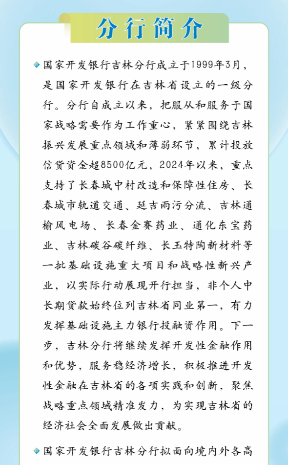 国家开发银行吉林分行2025届校园招聘