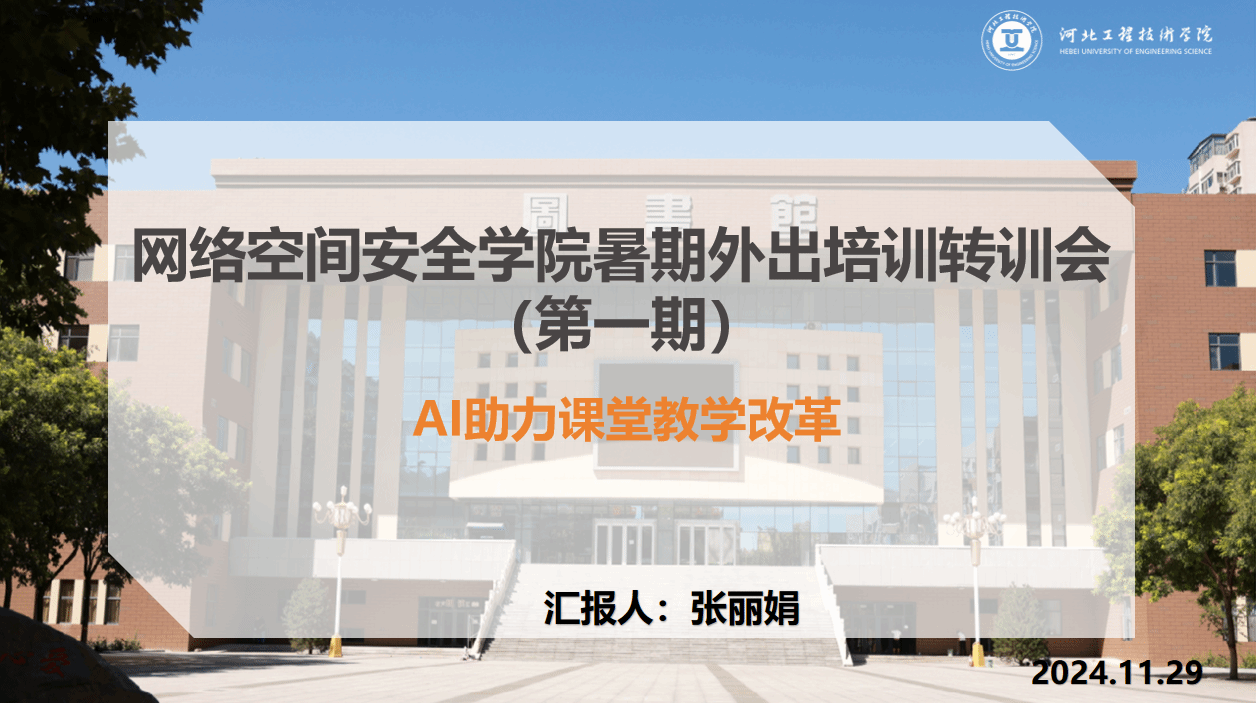 2024年11月29日,suncitygroup太阳新城举办了以“AI助力课堂教学改革”为主题的暑期外出培训转训会。本次培训由张丽娟老师主讲,suncitygroup太阳新城全体专任教师参加。