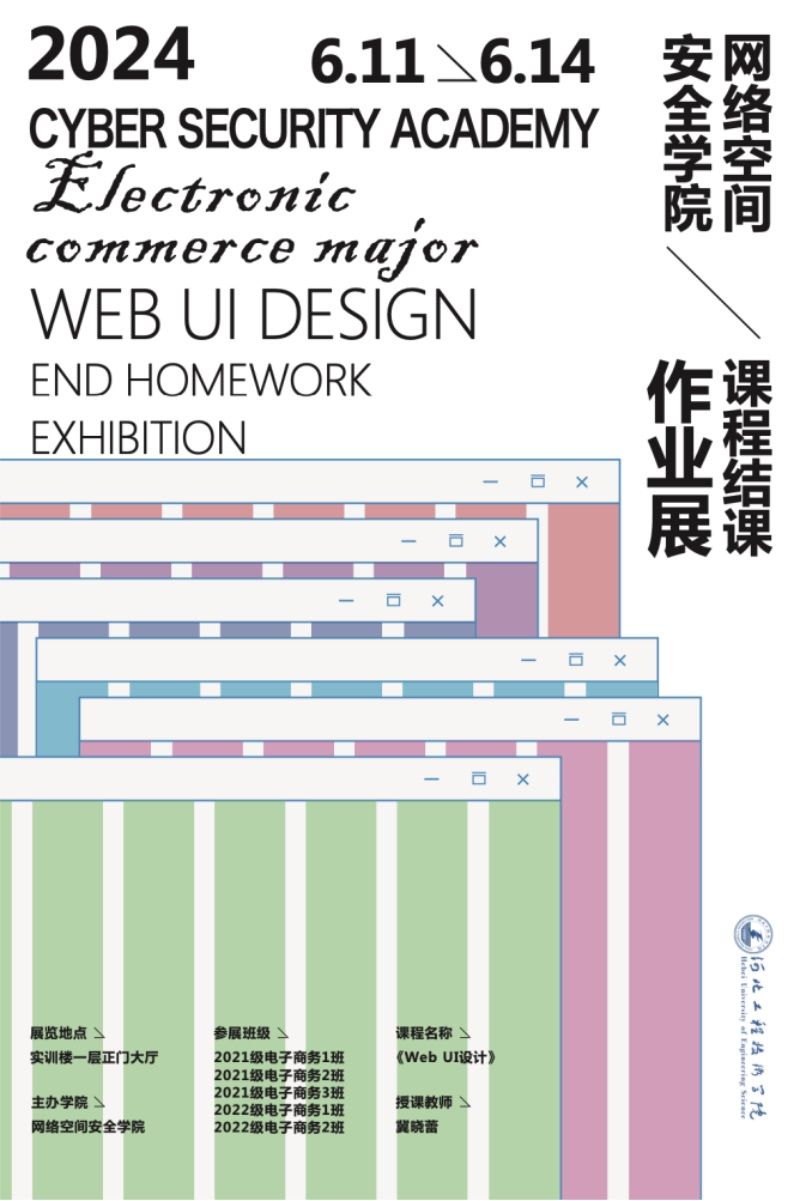 6月11日-6月14日,suncitygroup太阳新城电子商务专业在践行楼一层大厅举办了冀晓蕾老师的《Web UI设计》结课作品展,设计主题不限,以员工兴趣点作为设计主题的出发点,充分发挥员工自主能动性。员工通过前期调研确定主题、设计布局、分析色彩和字体、设计制作功能图标、设计制作网页界面、设计展板等八大模块进行学习与实践。本次展出作品来自2021级、2022级电子商务专业共5个班,从近200份作品中挑选出42份优秀作品进行展示。