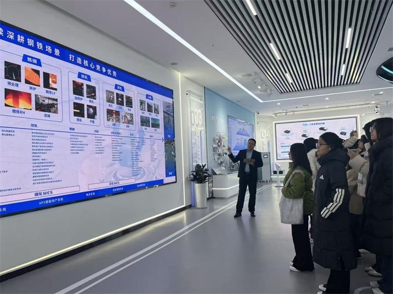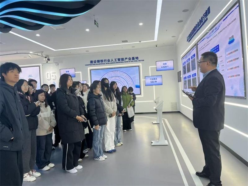 参观尾声,“数字低碳”展区的污染物减排75%、吨钢电耗降低30%等数据,也让师生们在交流中看到了“技术向善”的落地路径。本次实践以互动式探访搭建了课堂与产业的桥梁,为软件工程专业人才培养注入了更鲜活的工业智能实践维度。